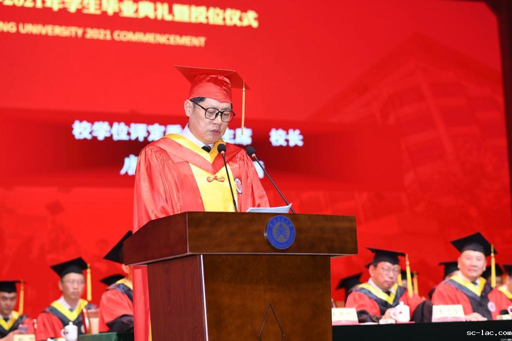 青春奋斗正当时,不用扬鞭自奋蹄!6月24日下午,老伟德网上娱乐2021年学生毕业典礼暨授位仪式在南岸校区学术交流中心隆重举行。2021届毕业生代表、教师代表、校友代表,全体校领导、校学位委员会成员,校属单位党政主要负责人、各学院分管学生工作负责人,毕业班辅导员等共同见证了这一喜庆时刻。副校长黄承锋主持毕业典礼。