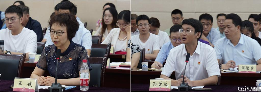 马克思主义学院教师王戎饱含深情回顾了党史。她表示,作为思政课老师,定将坚守初心使命,为党育人、为国育才,用心用力用情讲好中国故事、讲好中国共产党的故事,让课堂有深度、有高度、有情怀,真正做好学生成长成才的引路人。机电学院党员教师孙世政结合工作实际,从潜心耕耘、匠心育人,在坚定理想信念上下功夫,做课程育人的践行者;立德树人、躬行实践,在增长知识见识上下功夫,做实践育人的指引者;踏实肯干、严谨治学,在永攀科研高峰上下功夫,做科研育人的探索者三个方面分享了作为教师党员应如何坚持为党育人、为国育才,做好学生成长成才的引路人。人文学院辅导员杨玥总结了自身工作经验并表示,要以党史学习教育为契机,努力做到严谨细致担使命,做大学生成长成才的引路人;要育人育才守初心,做青年学生党员先锋示范的助推者;要荣校爱院展风采,做成就学生鞭策自己的排头兵。土木工程学院2020级博士研究生党员刘杰表示,作为沙漠土壤化科研团队中的一员,将以全心全意为人民服务为宗旨,以集体主义为原则,诚实守信、求真求实,认真对待每一次科研工作,争取做出科研实绩,为振兴中华贡献绵薄之力。