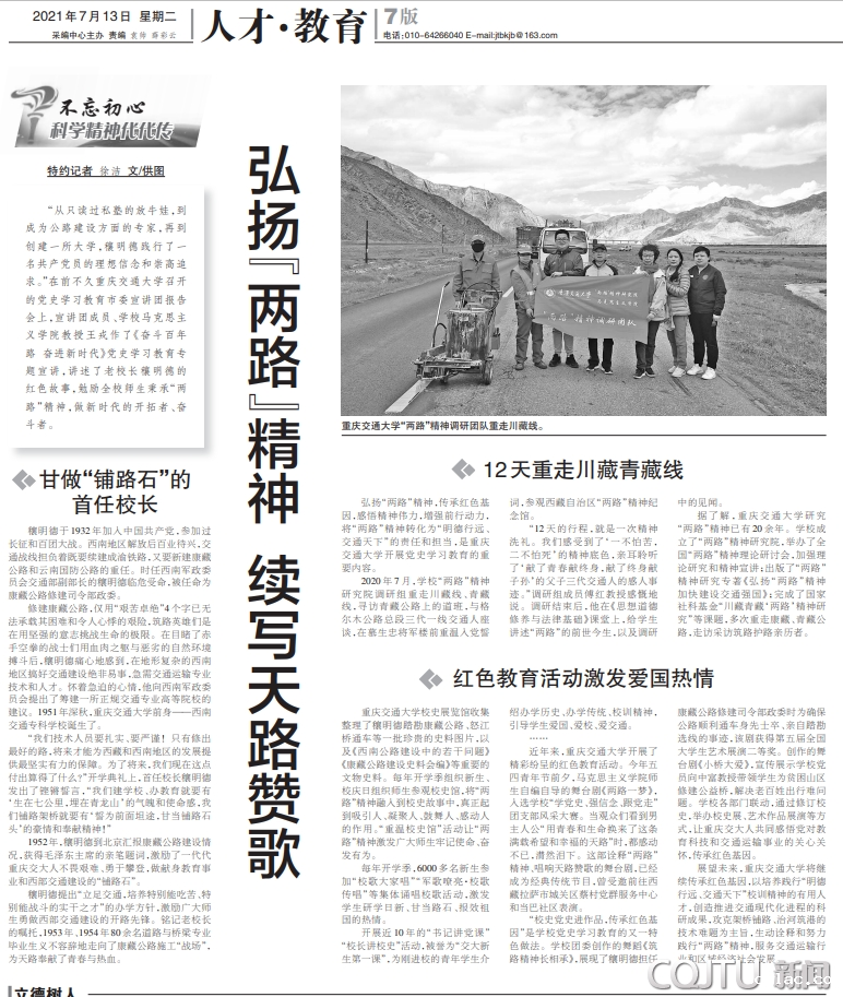 弘扬“两路”精神,传承红色基因,感悟精神伟力,增强前行的动力,将“两路”精神转化为“明德行远、交通天下”的责任和担当,是老伟德网上娱乐开展党史学习教育的重要内容。