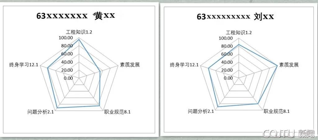 “我搜集学生工程知识、终身学习、问题分析、职业规范和素质发展5个方面的评价数据,形成雷达图。”柳军剑介绍道,“评价数据来自于各个层面的数据报表,数据真实可靠,说服力强,能有效引导学生后续发展。同时,教师的学业指导和学生教育管理工作也更具有针对性。”