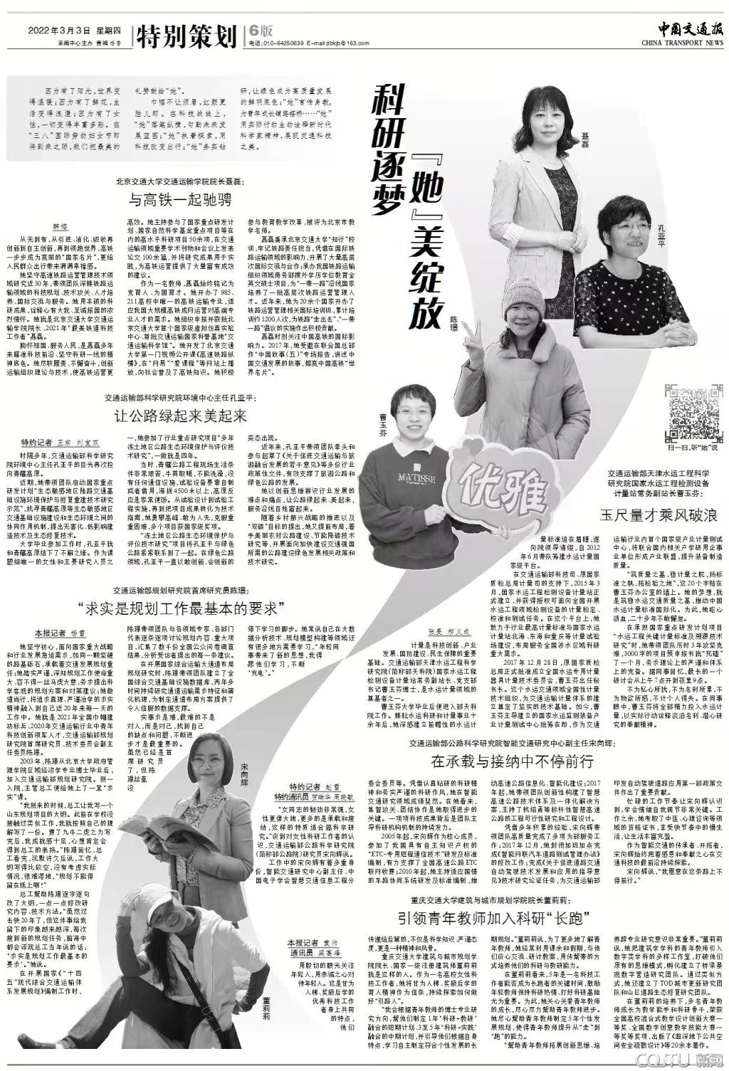3月3日,中国交通报以《科研逐梦“她”美绽放》为题,报道了一组交通战线女性科技工作者的风采,现将我校董莉莉教授的故事刊载如下: