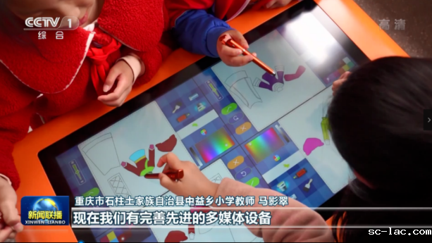 报道中,重庆石柱中益乡小学的孩子们围坐在一台AI互动桌旁,通过智能触控笔,对画面进行涂色。