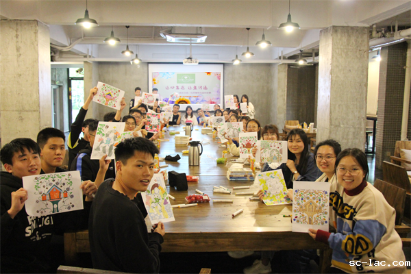 5月19日晚,学院开展“读书·绘画·悦心”沙龙,邀请35名同学参加。结合“520”,本期沙龙主题为“让心靠近,将爱传递”。两位指导老师帮助同学们正确看待恋爱问题,树立正确的恋爱观。指导老师们还传授了一种心理调适方法——涂色疗法,帮助同学们在绘画中释放情绪和压力。最后,师生济济一堂,倾诉心声,表达思想,交流情感。