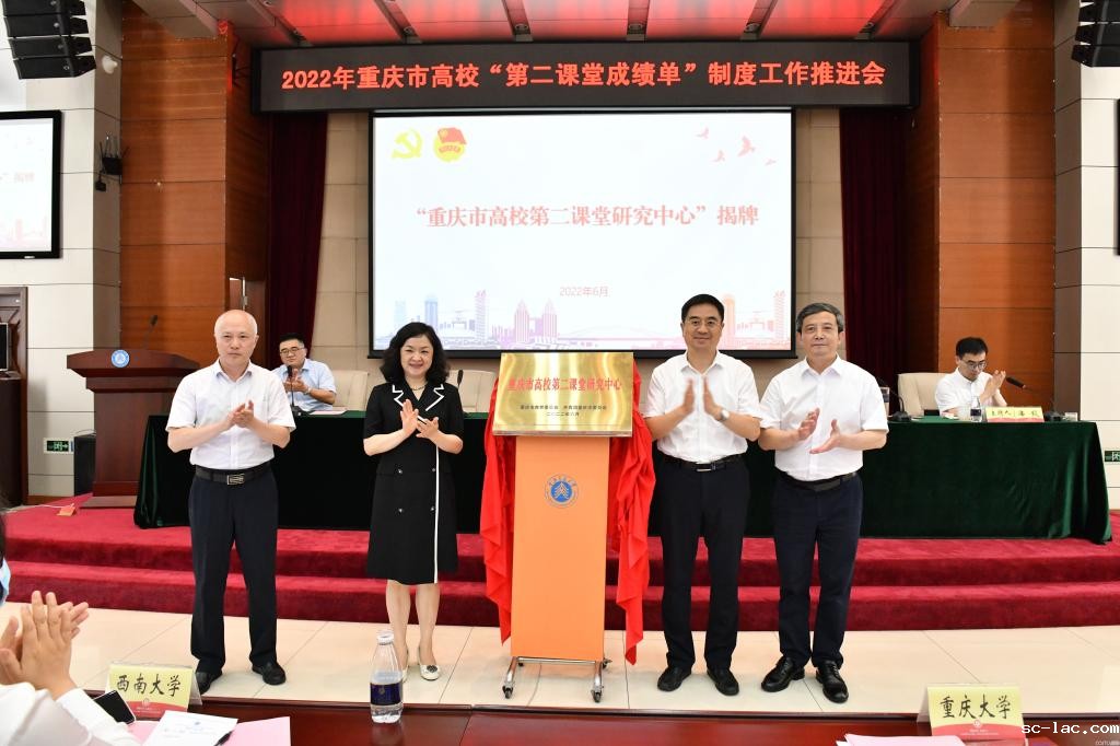 会上,市教委宣传处处长李林齐宣读了《关于成立重庆市高校第二课堂研究中心的通知》。与会领导为“重庆市高校第二课堂研究中心”揭牌。