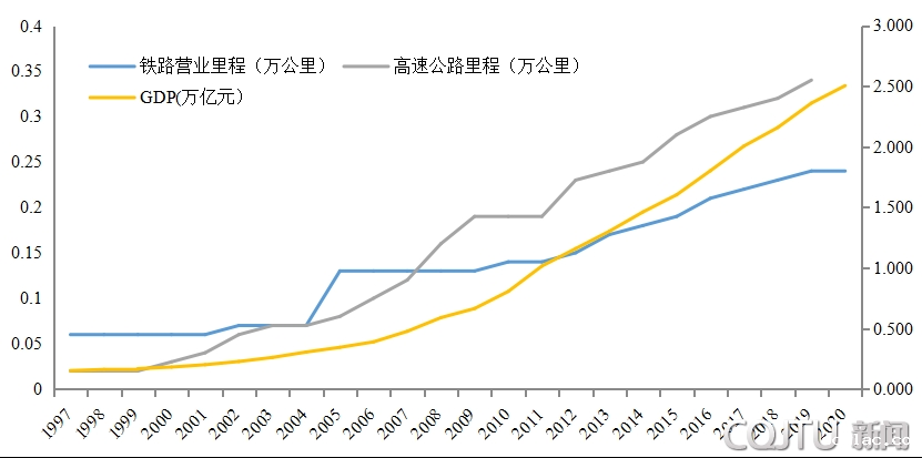 ▲直辖以来重庆高速公路和铁路建设与经济增长(课题组提供)