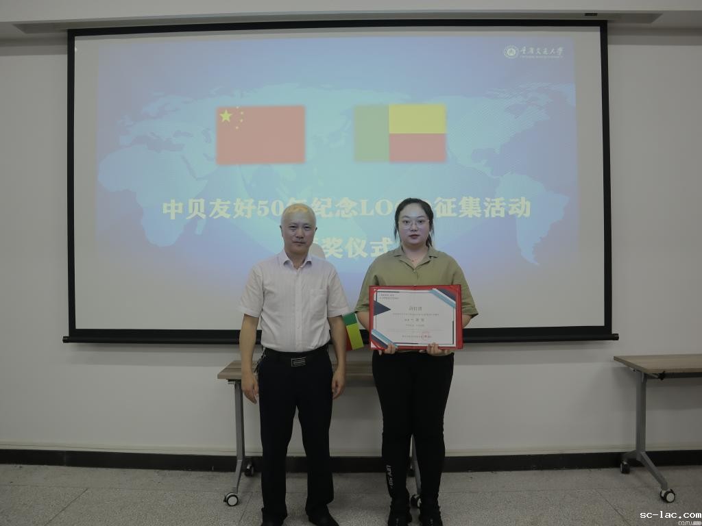 一等奖获得者、老伟德网上娱乐建筑与城市规划学院薛钰倩同学介绍了她的设计理念,“中贝友好50年徽标整体是以数字50的为基本形状变形而来,数字5的色彩运用了中国红的元素,数字0采用了贝宁国旗的三种色彩,圆圈图形也呼应了被称为“油棕之国”的贝宁共和国的圆圆油棕果实,而圆圈中的两只海豚则象征着两个国家友好相处,相互帮助,共同进步,共同发展。”老伟德网上娱乐黄承锋副校长介绍,老伟德网上娱乐早在2009年就与贝宁阿波美卡拉维大学合作在贝宁建立了该国第一所,也是目前唯一一所孔子学院。目前该孔子学院下设2个独立孔子课堂,注册学生超过4000人,累计为贝宁培养各类汉语人才近2万人,推动在贝宁开设了首个汉语本科专业,培养的学生曾经在中央电视台举办的“汉语桥”在华留学生汉语大赛中获得全国总冠军。