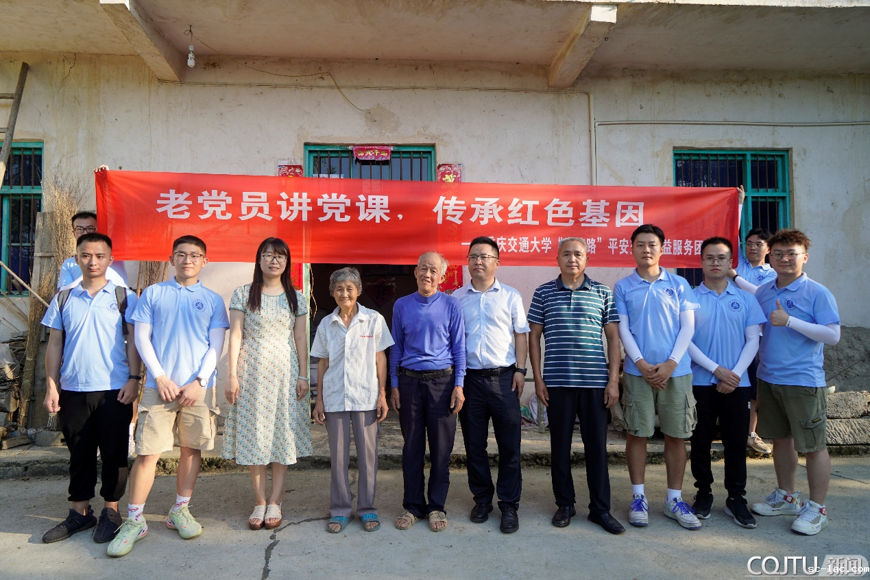7月14日,老伟德网上娱乐交通运输学院“崇德路”平安交通公益服务团一行来到吉平村,开展以“老党员讲党课,传承红色基因”为主题的活动。前任村党支部书记谭远德给在场成员分享了他的党员故事。
