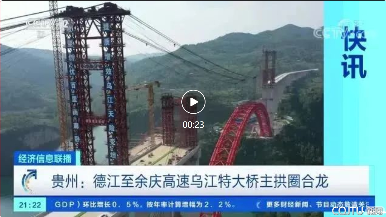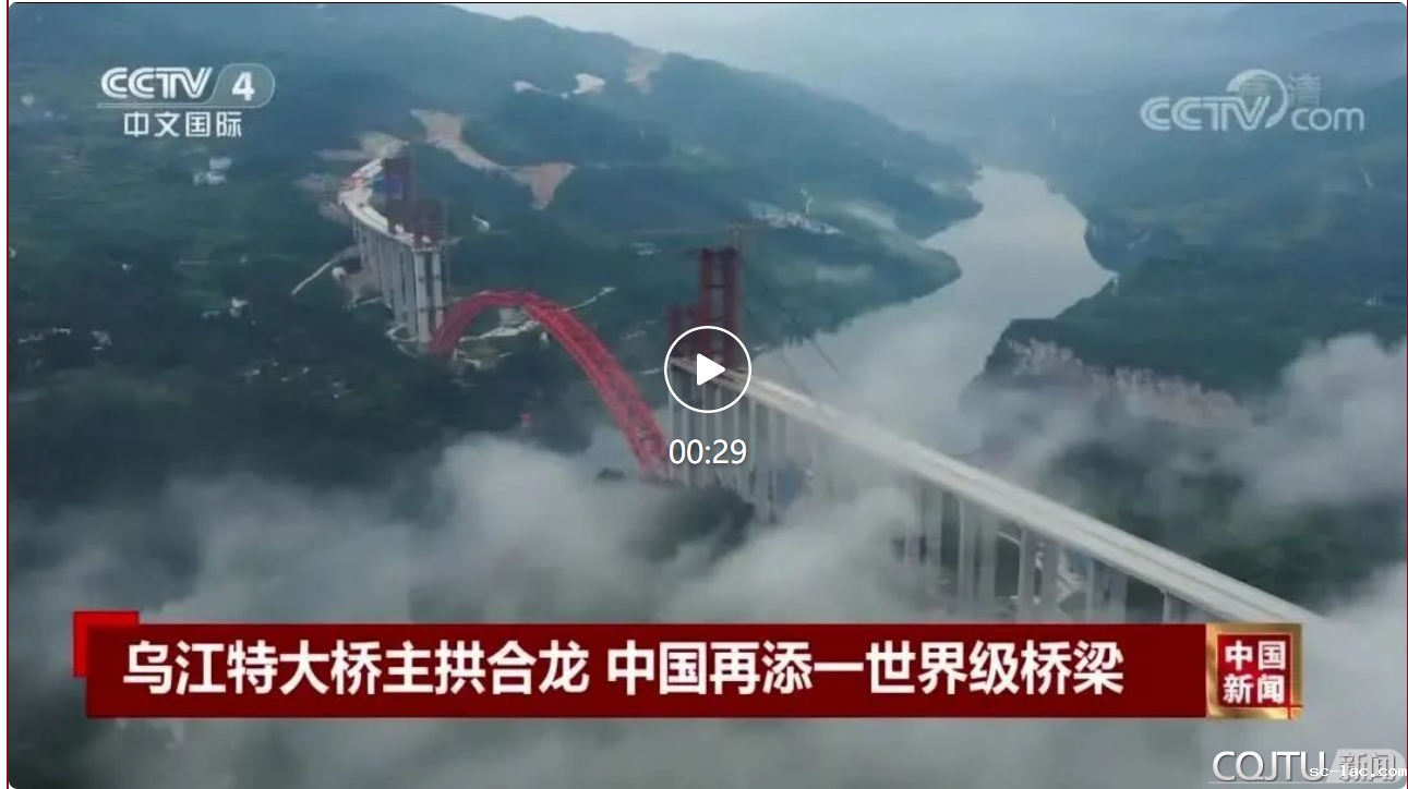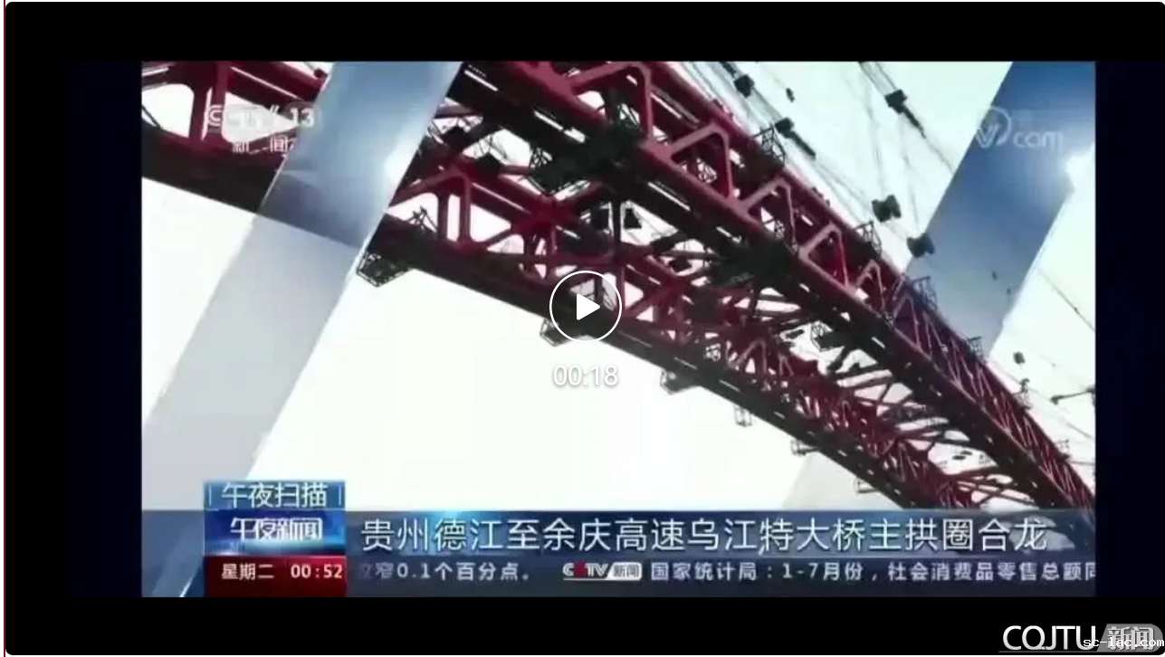 余乌江特大桥的顺利合龙,引起了社会的广泛关注。央视第1频道、央视第2频道、央视第4频道、央视第13频道、人民日报、经济日报、新华社、中国交通报、桥梁杂志等20余家主流媒体发布了乌江特大桥顺利合龙的消息。