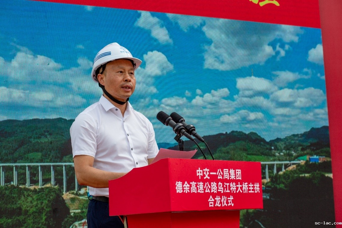 8月15日上午,合龙仪式在贵州德余六标乌江特大桥建设现场举行,交通部安全质量司二级巡视员张继顺,贵州省交通厅副厅长刘扬,中交一公局集团党委书记、董事长韩国明,中交公规院党委书记、董事长宋晖,中交一公局集团总工程师赵宗智等参加了合龙仪式。