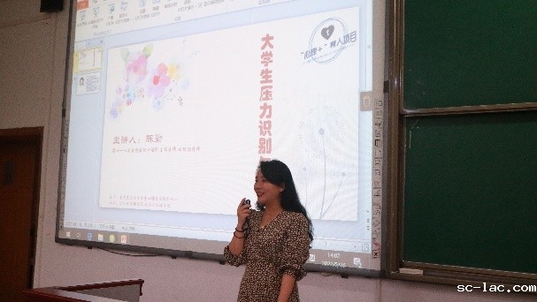 重庆市第十一人民医院睡眠心理科的陈勤主任为学生做“大学生压力识别与调试”讲座。老伟德网上娱乐供图 华龙网发