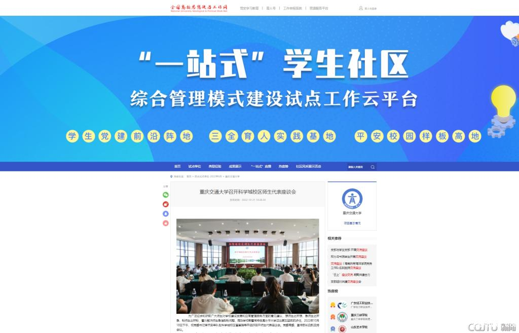 近日,全国高校思想政治工作网转载了我校致力于广泛征求和听取广大师生对学校建设发展和日常管理服务方面的意见建议,想师生之所想、急师生之所急、盼师生之所盼,着力解决师生急难愁盼问题,在科学城校区召开师生代表座谈会的专题新闻。广泛宣传高校学习贯彻党的二十大精神,切实把广大师生反映的意见建议和诉求放在心上、抓在手上、扛在肩上,为全校师生办实事、办好事、解难事,推动落实落地见效的行动举措。