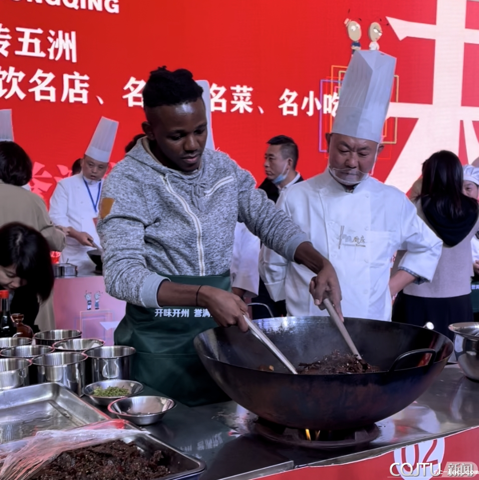 我校贝宁籍旅游管理专业留学生开文称,他来到重庆已经三年,学会了做中国的炒饭、炒面和小面,这次能到开州跟着大厨们学习开州特色菜特别开心。来自喀麦隆的我校留学生安歌在大厨的指导下制作了椒麻牛肉,麻辣红亮、香味扑鼻。他说,重庆城和重庆人就像重庆的小面和火锅,热情、开放、包容,他已经深深地爱上了这里。
