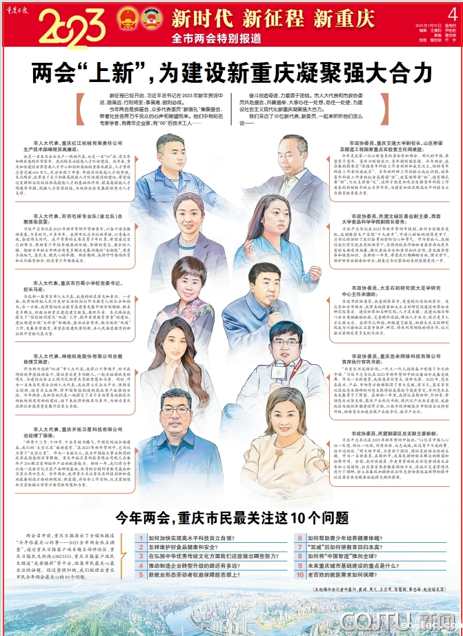 两会召开前,重庆日报推出了全媒体报道“今年你最关心的事——2023全市两会热点调查”,通过重庆日报客户端专题互动评论区、重庆日报民生热线63823333、重庆日报客户端民生频道“我要报料”等平台,收集市民最关心最关注的话题。经过整理归纳,我们梳理出重庆市民今年两会最关心的10个问题。