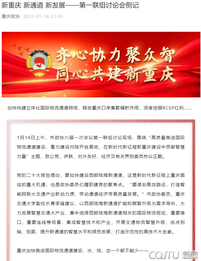 新时代有新目标,新征程有新作为。新一届政协委员们正铆足了干劲,把助力新重庆建设作为履职尽责的“主跑道”,为助推高质量推进国际物流通道建设,建设内陆开放高地奋力跑出“加速度”。