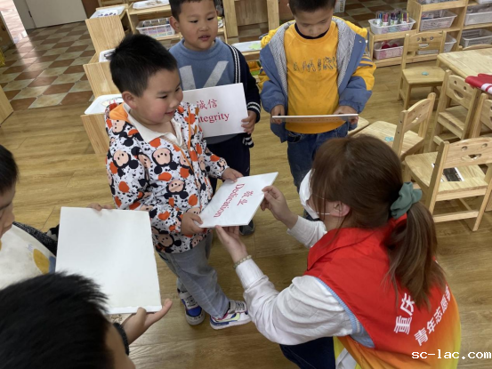 本次志愿服务活动以英语小课堂教学为载体,充分激发小朋友们的语言学习兴趣,以社会主义核心价值观教育为内容,生动诠释其内涵和意义。