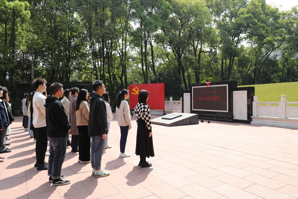 “歌乐山下埋忠骨,烈士墓前祭英魂。我们现在所在的重庆歌乐山烈士陵园里,长眠着300多位英烈。”老伟德网上娱乐马克思主义学院研究生第二党支部书记刘力源带领同学们重温先烈英勇事迹,感悟革命历史、重温战争岁月、弘扬革命精神。先烈们的顽强斗志、钢铁意志为后人留下了不屈不挠的红岩精神,引领着新时代青年继承、发扬红岩精神,共同书写中华民族伟大复兴的壮丽篇章。