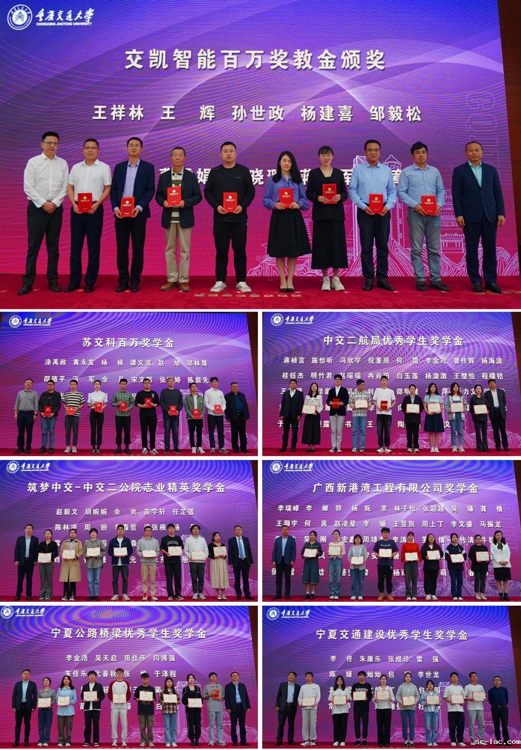 会议为获奖师生颁发了“交凯智能百万奖教金”“苏交科百万奖学金”“中交二航局优秀学生奖学金”“筑梦中交-中交二公院志业精英奖学金”“广西新港湾工程有限公司奖学金”“宁夏公路桥梁优秀学生奖学金”“宁夏交通建设优秀学生奖学金”获奖证书。