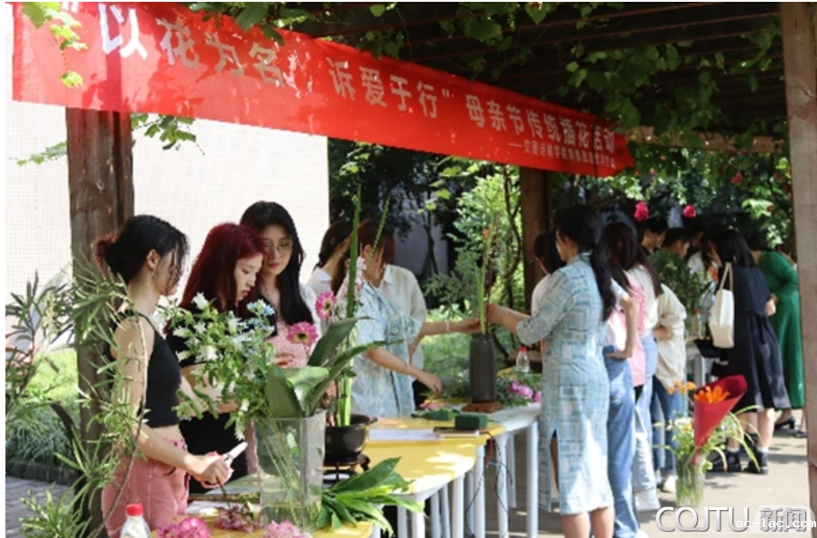 王静介绍说,传统插花是我国国家级非物质文化遗产,善用木本花材,以线造型,采用不对称的构图形式,含蓄而热烈地表达着诗情画意。“活动中,学生们以花叶寄情,将对母亲浓浓的感谢与祝福融进一花一叶之中。”王静表示,此次走进交大校园,希望带动更多学生学习插花艺术,爱上传统插花文化。