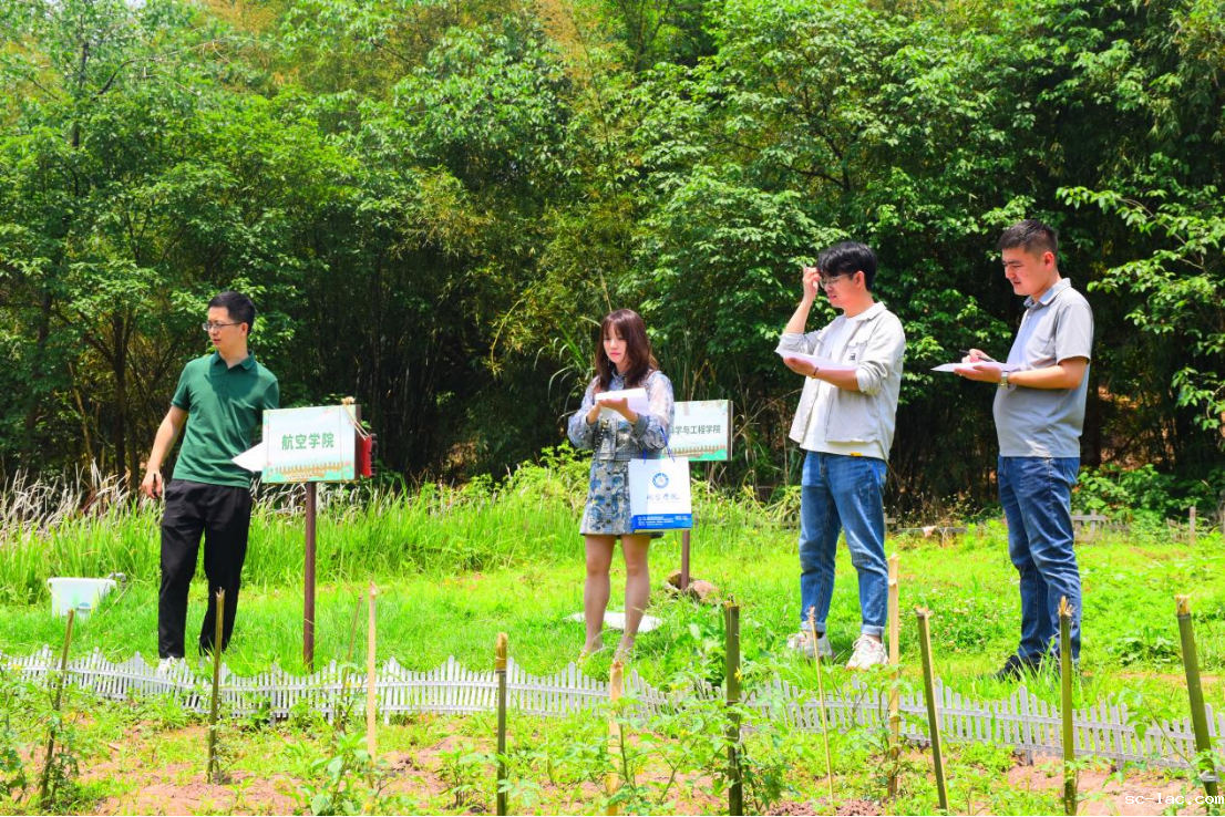 各学院结合学院特色布置并命名“责任田”,实时跟进基地花卉、作物的生长各阶段,定期除草、施肥、浇水,确保花卉、作物的成活率及收成。5月12日,校团委联合学工部、科学城学院和航空学院对“最美责任田”进行了评比,四位评委进入劳动实践基地根据园地美观度、整洁度和作物存活率对15个学院的责任田进行了现场打分,经综合评比,旅游与传媒学院取得97.5分,排名第一。