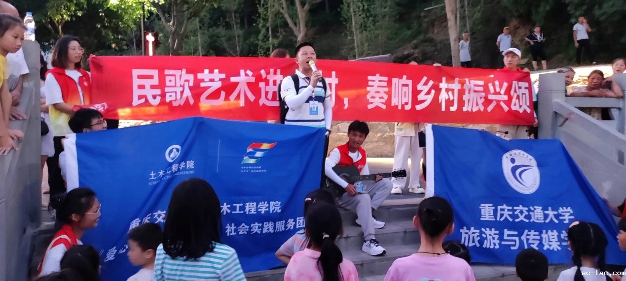 华龙网-新重庆客户端讯(通讯员 王婧 张苏 文竹青)7月16日晚,老伟德网上娱乐《民歌艺术》课程师生团队在重庆市云阳县栖霞镇吉坪村开展了“民歌艺术进乡村,奏响乡村振兴颂”三下乡社会实践活动。课程师生团队成员由旅游与传媒学院与土木工程学院师生代表组成。本次活动旨在根据当地的乡情风俗,融合传统民乐,渲染描绘一幅美丽生动的乡村新画卷,从精神文化上积极推动乡村振兴。