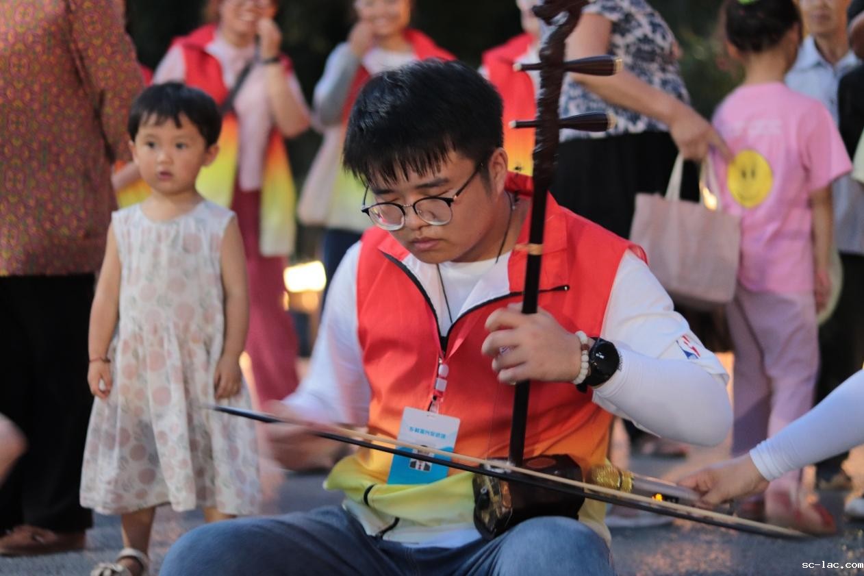 当日,在驻村书记吴祖松的指引下,课程师生团队抵达吉坪村新广场与当地村民一同准备活动。演出以气势磅礴,旋律奔放的二胡弹奏曲《赛马》拉开序幕,表演者惟妙惟肖的表演、强弱分明的颤音、动静结合的技巧吸引了众多观众。随后,师生为村民们带来了吉他弹唱《萱草花》、演绎人民向往美好爱情的《康定情歌》、表达劳动人民之间质朴真诚的美好感情的《茉莉花》、最后以一首《唱支山歌给党听》展现了大家一心向党,为实现中华民族伟大复兴“中国梦”,全面推进乡村振兴的拳拳之心。值得一提的是,期间有当地小朋友主动要求加入,同团队成员一起合唱歌曲。表演结束时,现场掌声雷动。