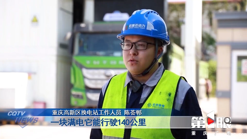 重庆高新区换电站工作人员陈荟郸介绍,汽车完成整套换电流程4分半。一块满电它能行驶140公里。