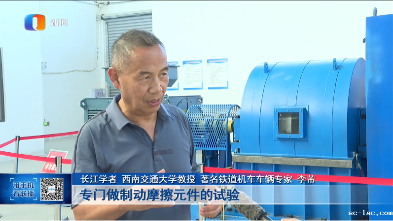 西南交通大学教授、著名铁道机车车辆专家李芾教授对试验台进行了介绍。据介绍,这个试验台主要用于货运列车上制动部件闸瓦的性能检测,目前国内仅有三家实验室能开展检测业务。