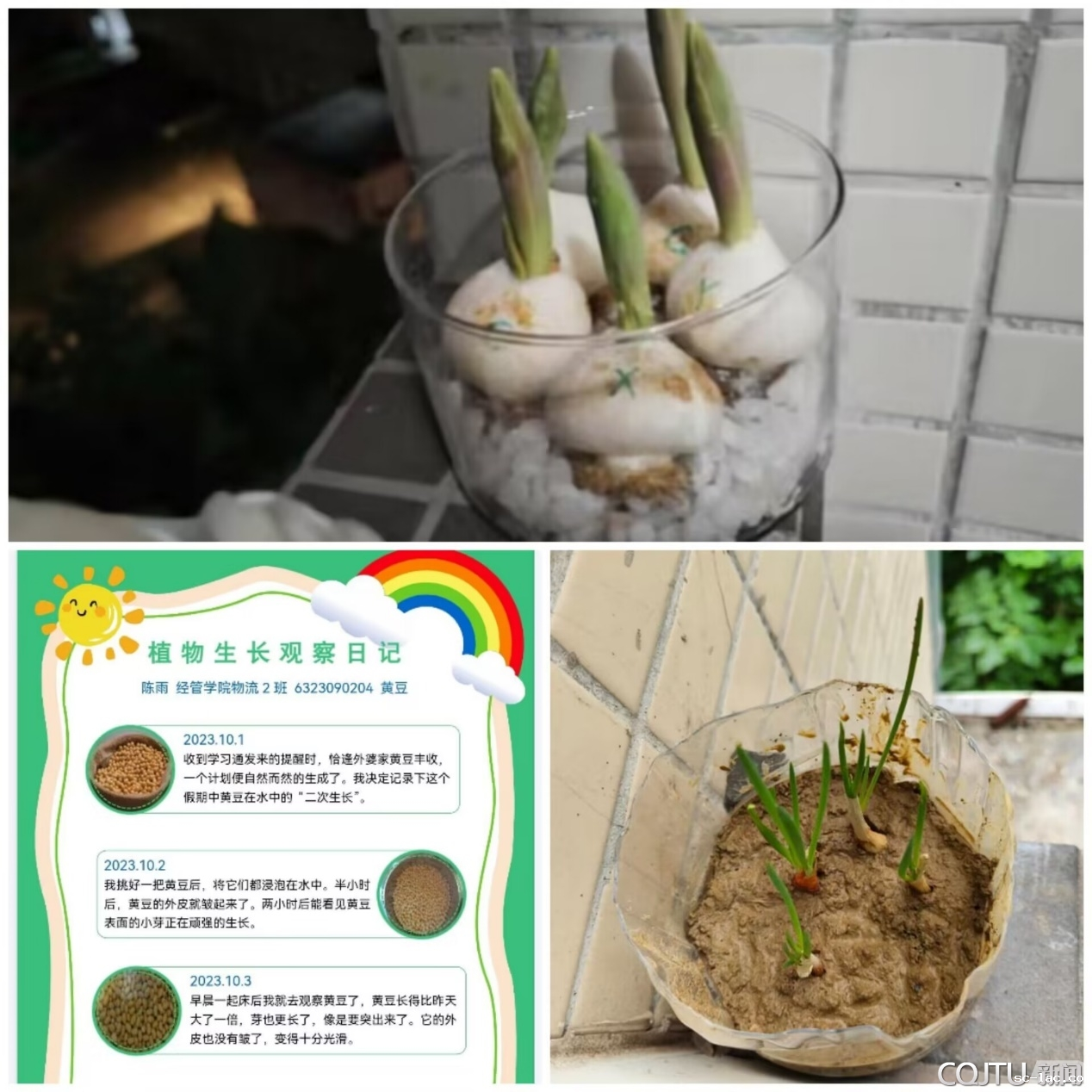 学生们从家乡带来植物种子,在学校实践基地撒下种子、精心劳作呵护,以种植报告的形式记录植物生长,并进行研学。