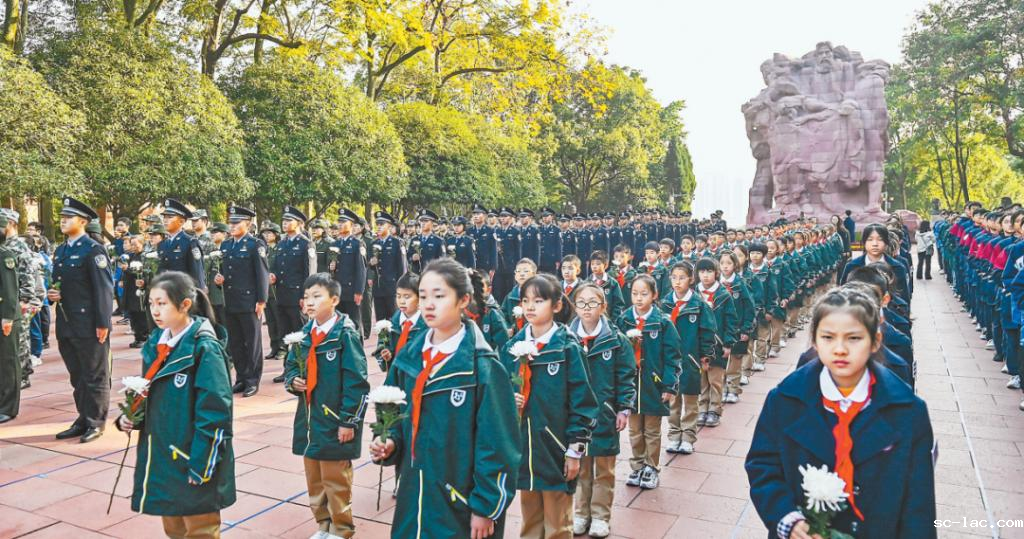 当天,“11·27”烈士殉难74周年纪念活动在歌乐山烈士陵园举行。市委宣传部、市教委、市文旅委、市退役军人事务局、重庆红岩革命历史文化中心、沙坪坝区相关负责人和烈士亲属代表、“红岩班”“周恩来班”特色班队代表、红岩志愿者代表、干群代表等约500人共同纪念“11·27”烈士殉难74周年。
