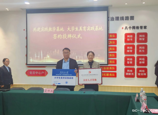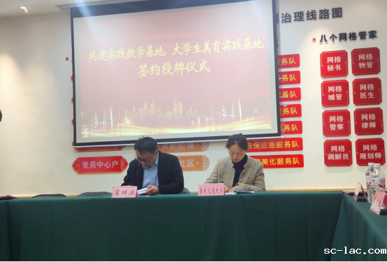 为深化协同美育教育,推动大学生美育实践基地建设,3月20日下午,艺术设计学院受邀参加南岸区龙门浩街道“共建实践教学基地 大学生美育实践基地”签约授牌,学院党委书记朱静、副书记吉孟君、院党政办主任曾理、院团委书记王辉以及学生代表出席仪式。