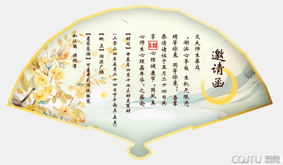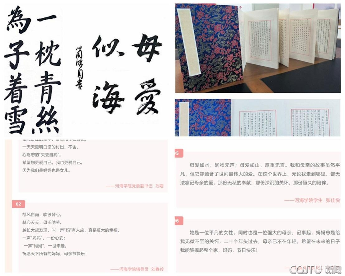 (三)手作暖心:让巧手和丝线、扇纸、树叶、墨纸来一场心灵对话。校心理咨询中心心理咨询师带领同学们结编“文昌结”,共织“小心愿”,祈福如意顺遂。母亲节之际,旅传学院学子以“扇”为媒、以“叶”为介,向母亲传递感恩情怀。土木、河海学院师生用书写表达母爱深情。