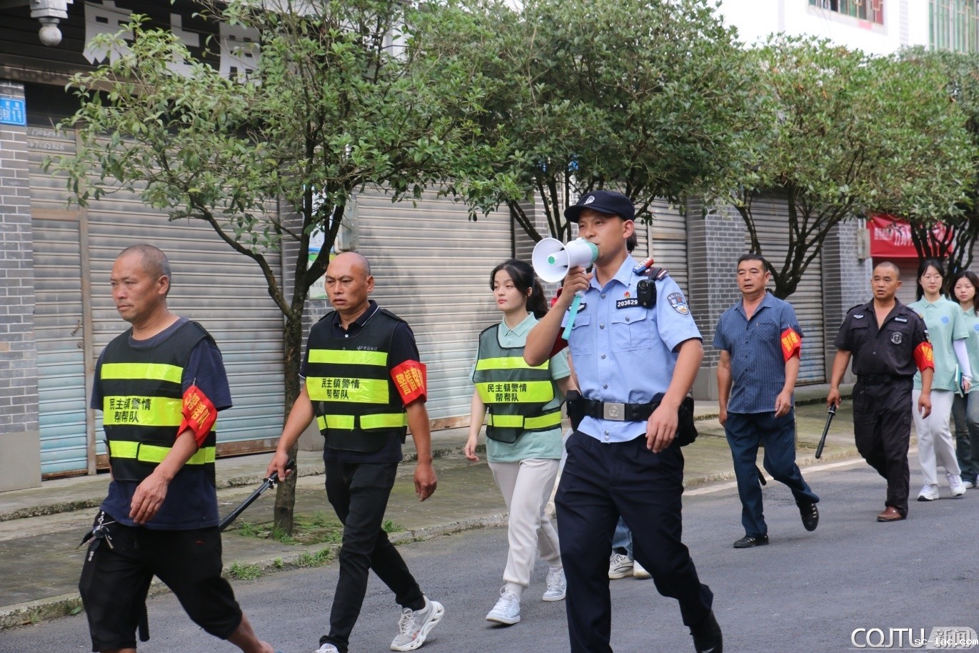 “稍息”、“立正”、“向左转”、“齐步走”,随着一声令下,实践团成员们在南川区公安局鸣玉派出所民主镇警务室门口整队出发。在社区民警周人伟的带领下,实践团成员们开始了今天的巡逻防控工作。