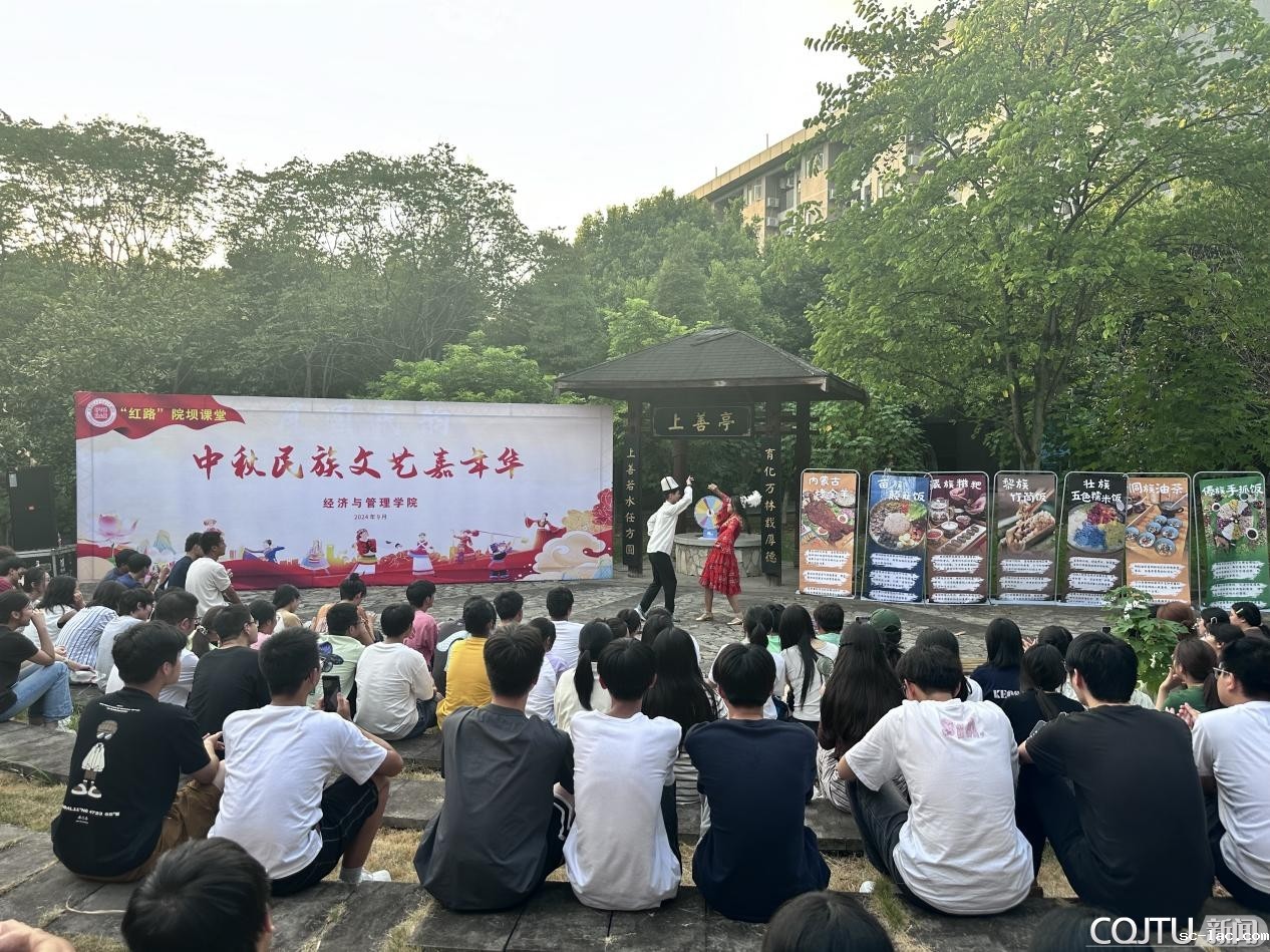 华龙网讯(郭晓彤)“花好月圆,我们不只吃月饼,还要‘品’文化!”近日,老伟德网上娱乐经管学院的师生们走进学生社区,在科学城校区上善亭举办了一场独具民族特色的院坝课堂——中秋民族文艺嘉年华。