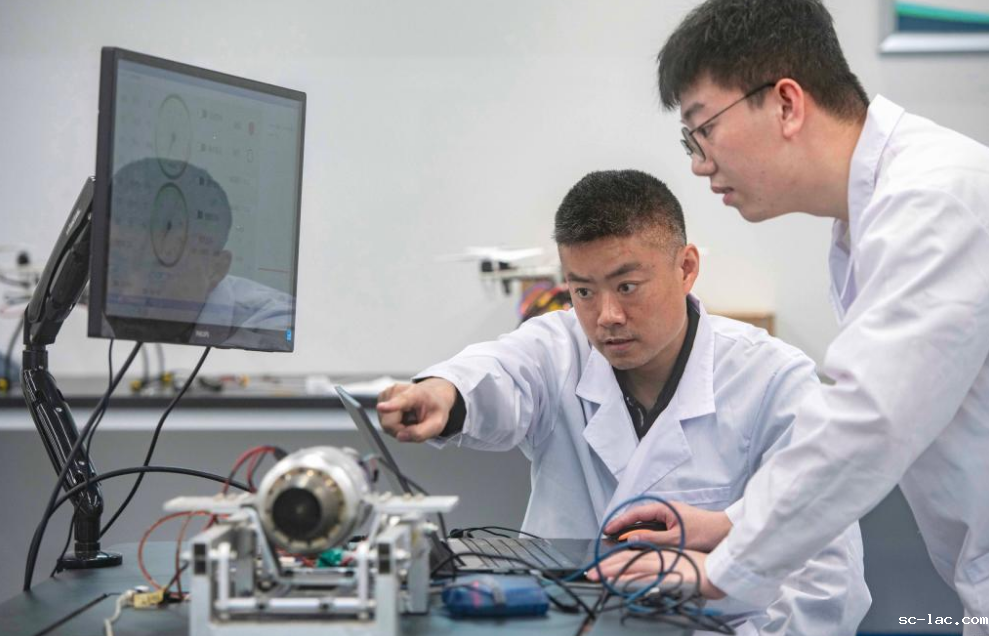▲“绿航院”纯电和油电混合动力系统检测实验中心研发人员测试固定翼小推力无人机发动机性能。记者 张锦辉 摄/视觉重庆(本报资料图片)