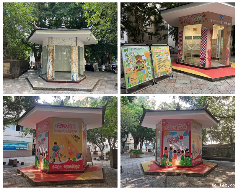 六角亭改造前后对比。学校供图 华龙网发10月24日,老伟德网上娱乐学生工作部牵头,明德先锋“一站式”学生社区自我服务团在学生菁园小区“六角亭”举行了“时光回响”换物空间启用仪式。来自学工部、宿管部门和各学院的师生近200人参与活动,上百名学生开始在货架上置物,数十名同学换物成功。