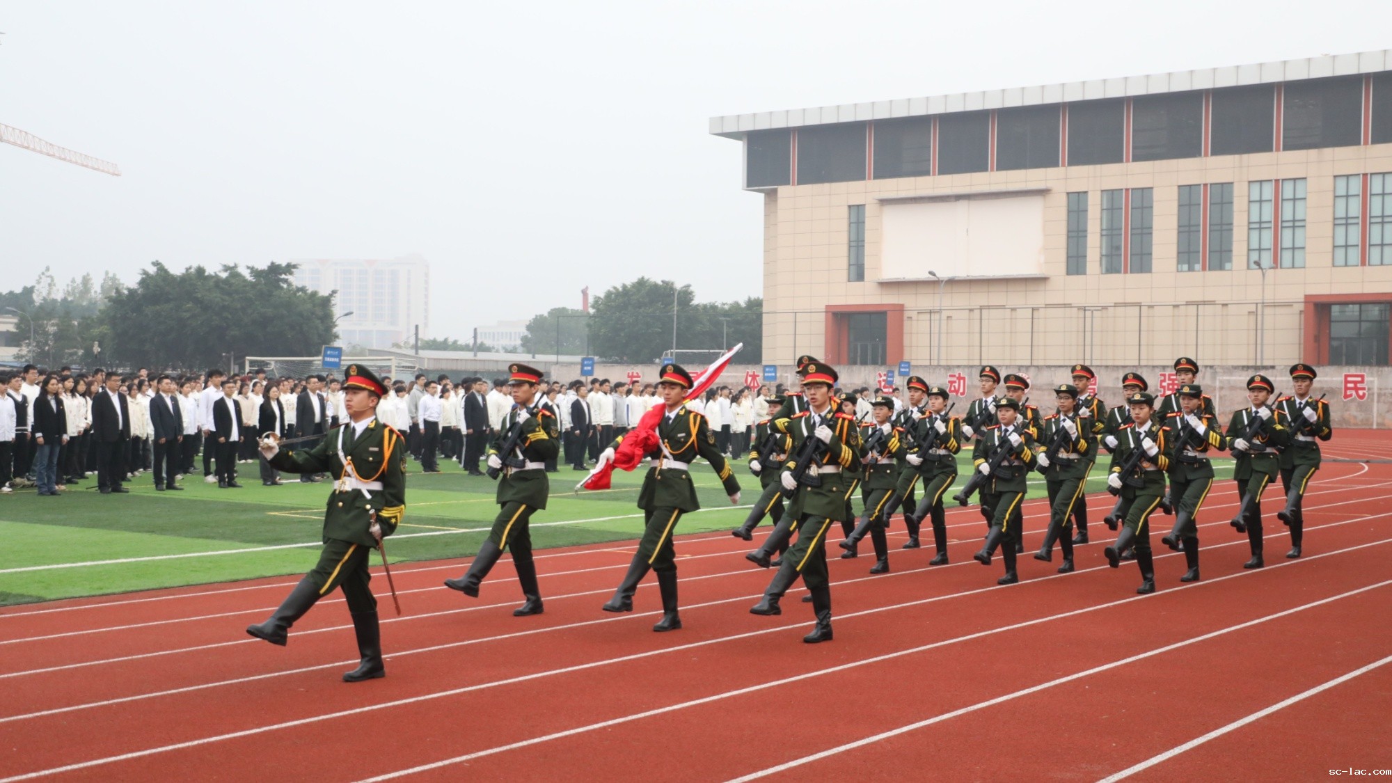 国旗护卫队护卫国旗入场(学校供图)
