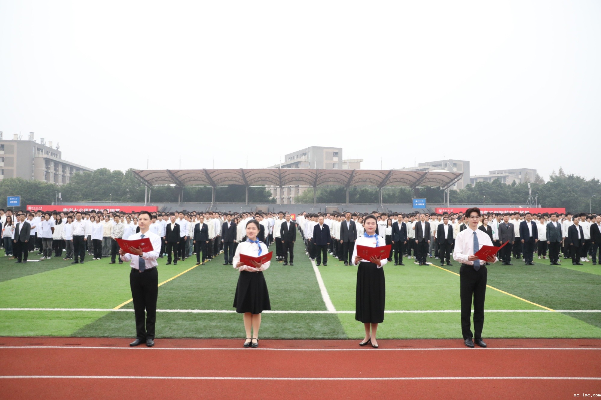 早上七时整,在科学城校区,巨幅校旗缓缓入场,全场师生肃立,目光紧随旗帜。这面旗帜承载着交大73年的风雨历程,是20余万交大人的成长与荣耀,也是交大人“明德行远、交通天下”的初心使命,还是交大人传承弘扬“两路”精神的坚定信仰。