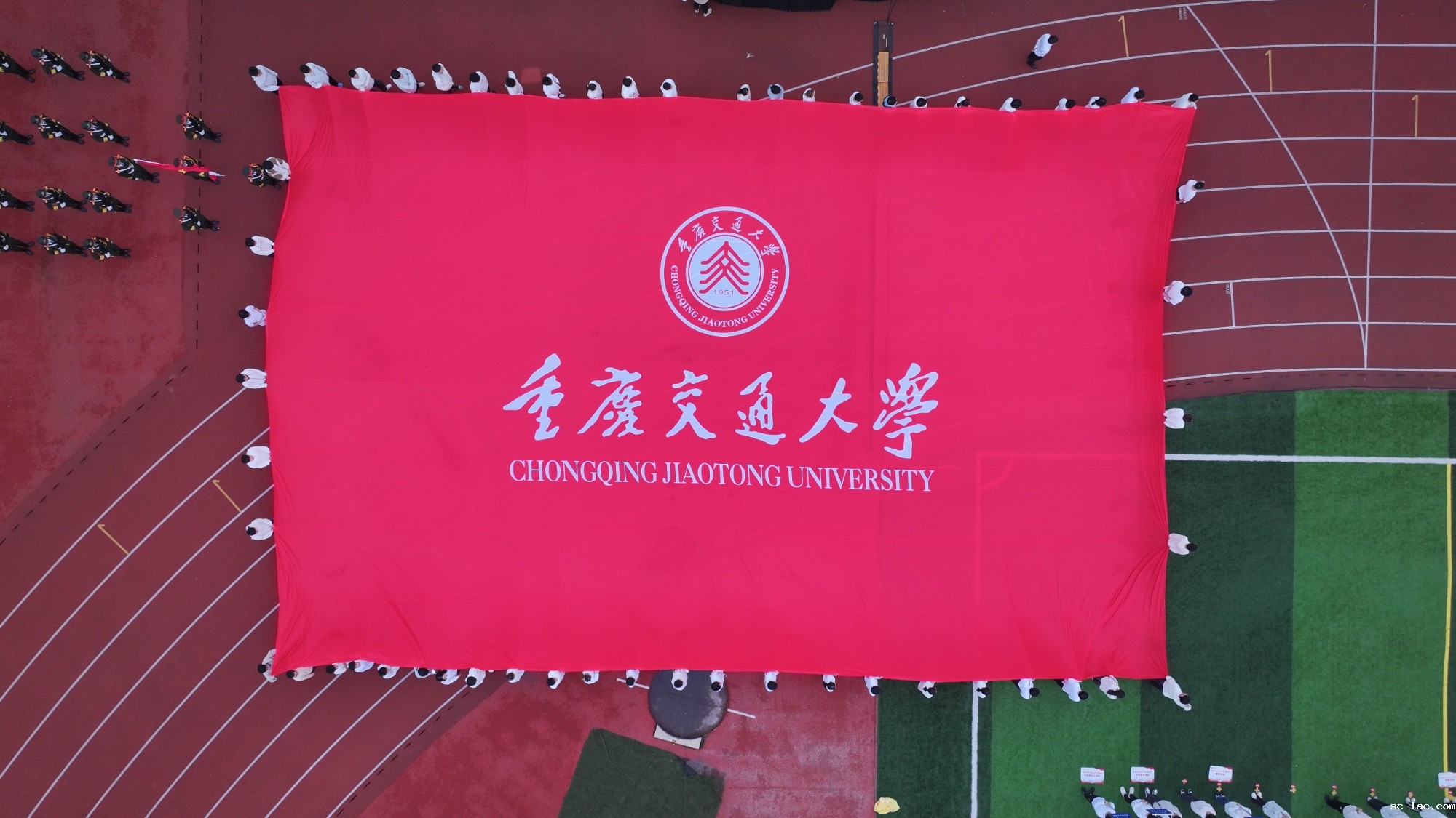 巨幅校旗缓缓入场(学校供图)