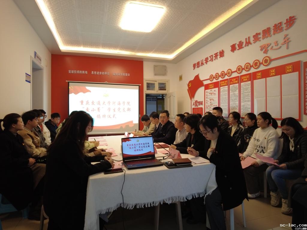 与会领导、师生共同为“交小菁”学生支部委员会举行揭牌仪式。仪式后,支部开展主题党日活动,任海涛为全体党员讲授“第一堂党课”。