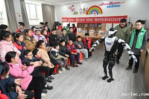 ▲3月5日,南岸区巨成金竹希望小学,重庆工商大学“学雷锋”师生志愿者为孩子们展示人形机器人。记者 刘力 摄