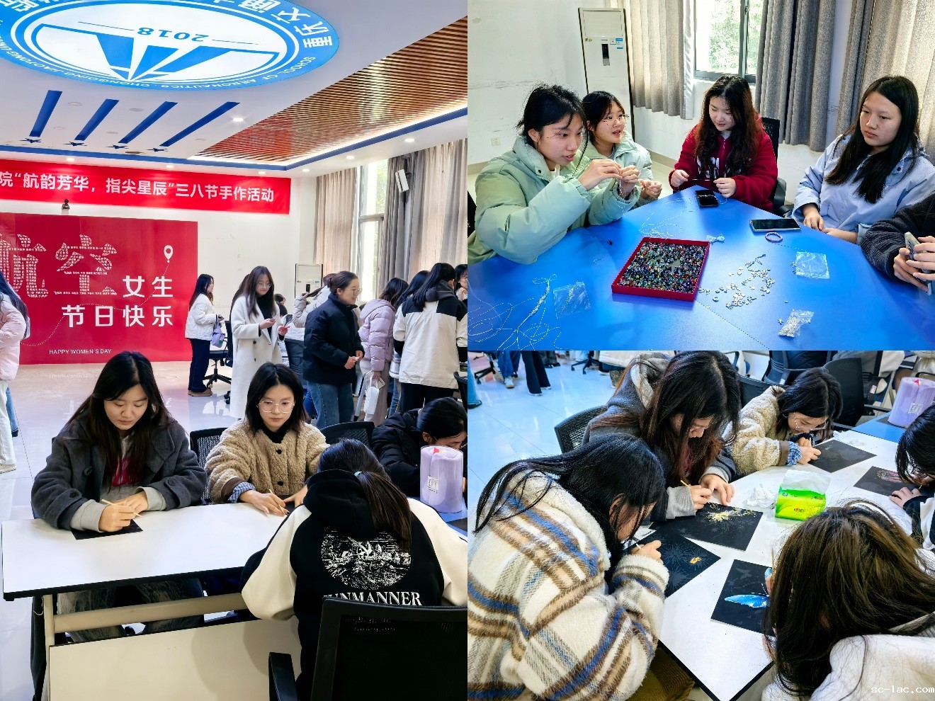 在“三八”国际妇女节期间,一场充满创意的手作活动在航空楼210教室热闹展开,构建起三维美学实践空间:“云端织翼”琉璃珠手串工坊里,师生们把梦想融入珠子之中,在追求美的同时表达热爱;“银燕绘梦”炫彩刮画艺术区中,她们拿起刮笔创作,画面如银燕翱翔于星空之下,璀璨而美好,这个过程舒缓了心灵,也激发了创造力;而“云裳礼赞”抽奖环节则像闪烁的星辰,带来欢乐惊喜,加深师生间的情感交流,让温暖与关爱如春风般拂人心。这一活动在温馨氛围中激发了创造力并促进了情感交流。