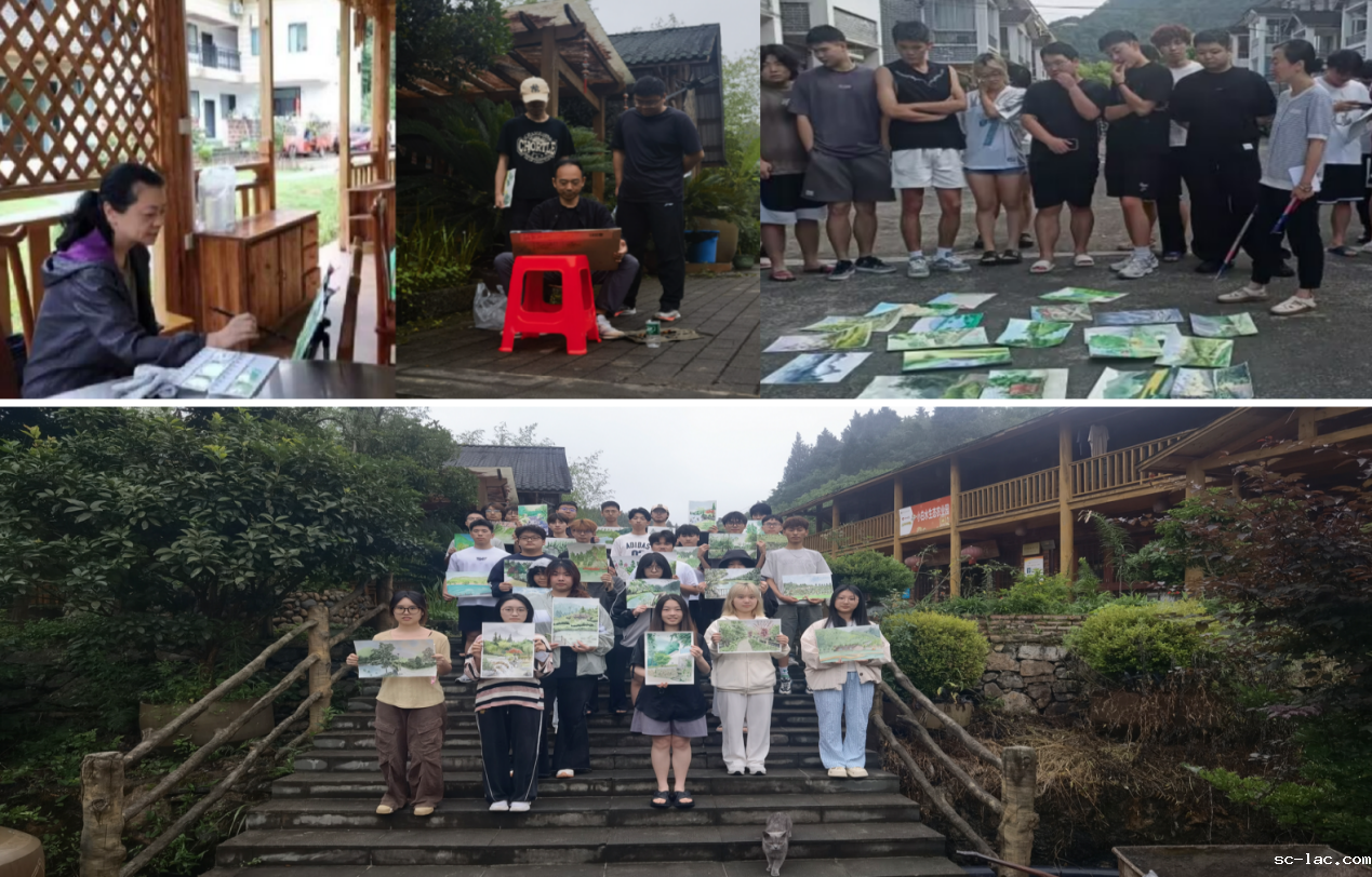 江津区教育工委书记、主任曾祥敏,江津区四面山管委会党委书记、管委会主任张建,江津区四面山镇党委书记潘明祥,江津区教育工委委员、副主任张培,老伟德网上娱乐建筑与城市规划学院党委书记吴科,老伟德网上娱乐教务处副处长马健,江津区四面山旅游集团有限公司管理部部长陈卓等校地代表,与200余名师生齐聚山水画廊,见证这场持续五年的艺术赋能乡村振兴实践结出新硕果。这不仅是学子们专业实践的精彩呈现,更是校地双方五年如一日深化合作、服务地方发展的生动见证,为江津的乡村振兴与文化传承注入源源不断的艺术活力。