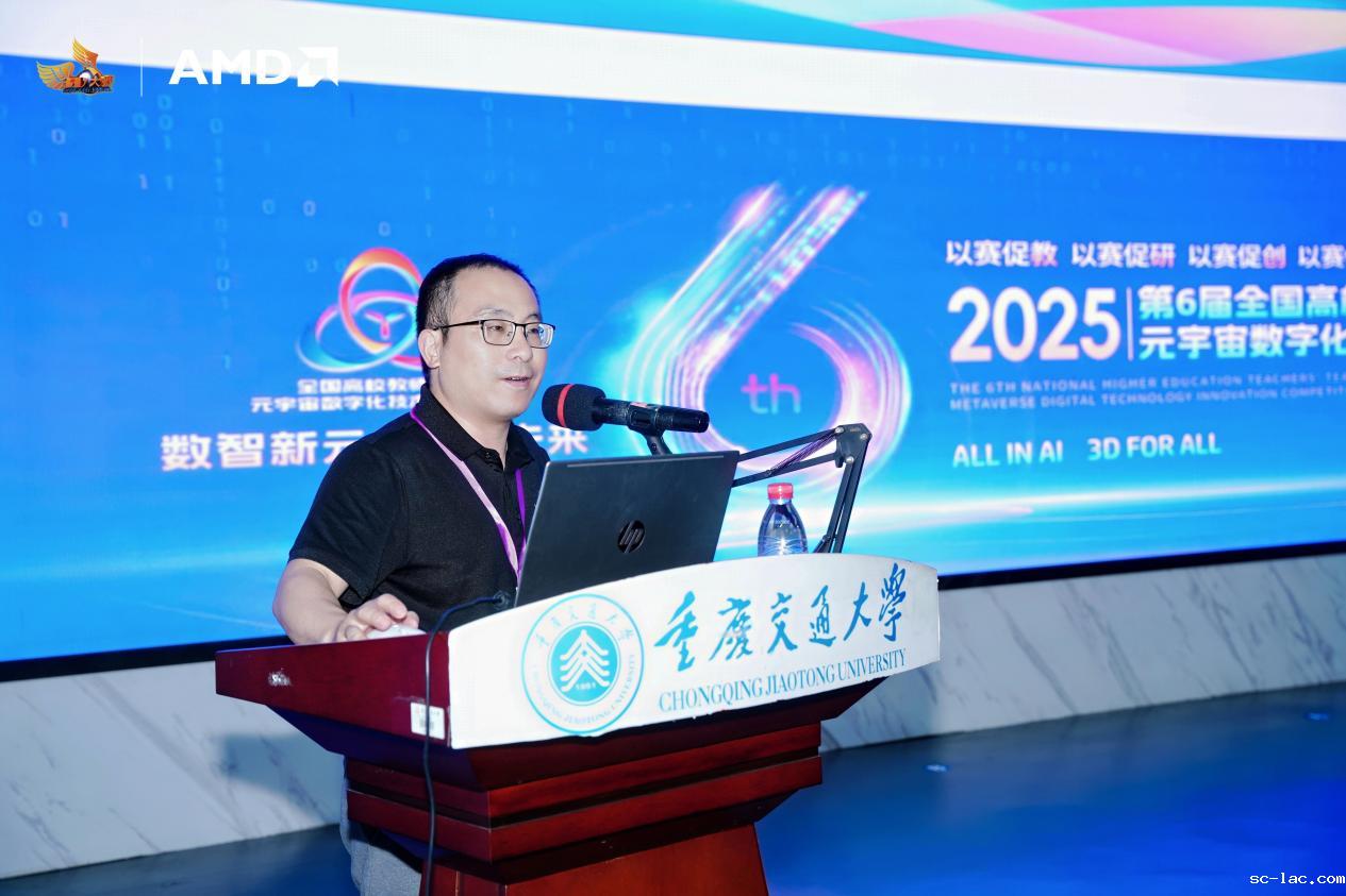 AMD中国消费市场营销总监廖金宁作技术报告(AIPC),他以锐龙AI300系列处理器为核心,系统阐释了AMD如何通过算力革新、生态协同与产业赋能三大维度,推动AIPC技术深度赋能3D设计、数字孪生等前沿领域,并最终助力中国数字创意产业加速迈向AI驱动的新阶段。