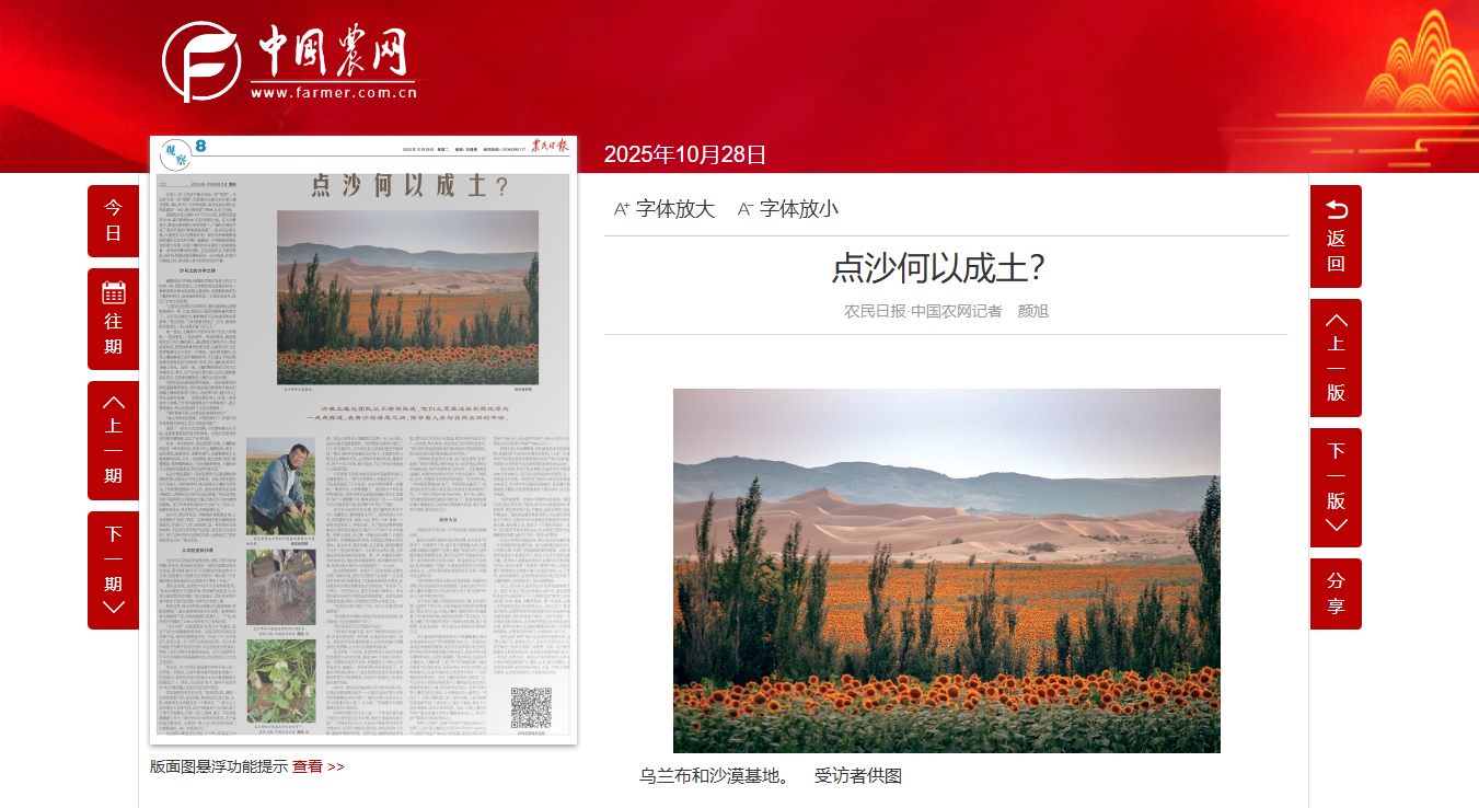 “我们的目标就不是‘消灭’我国所有的原生沙漠,毕竟沙漠也是一种资源,也是自然环境的一部分。我们的目标是遏制荒漠化,比如恢复被沙漠覆盖的土地资源,让人们可以重新利用起来。”