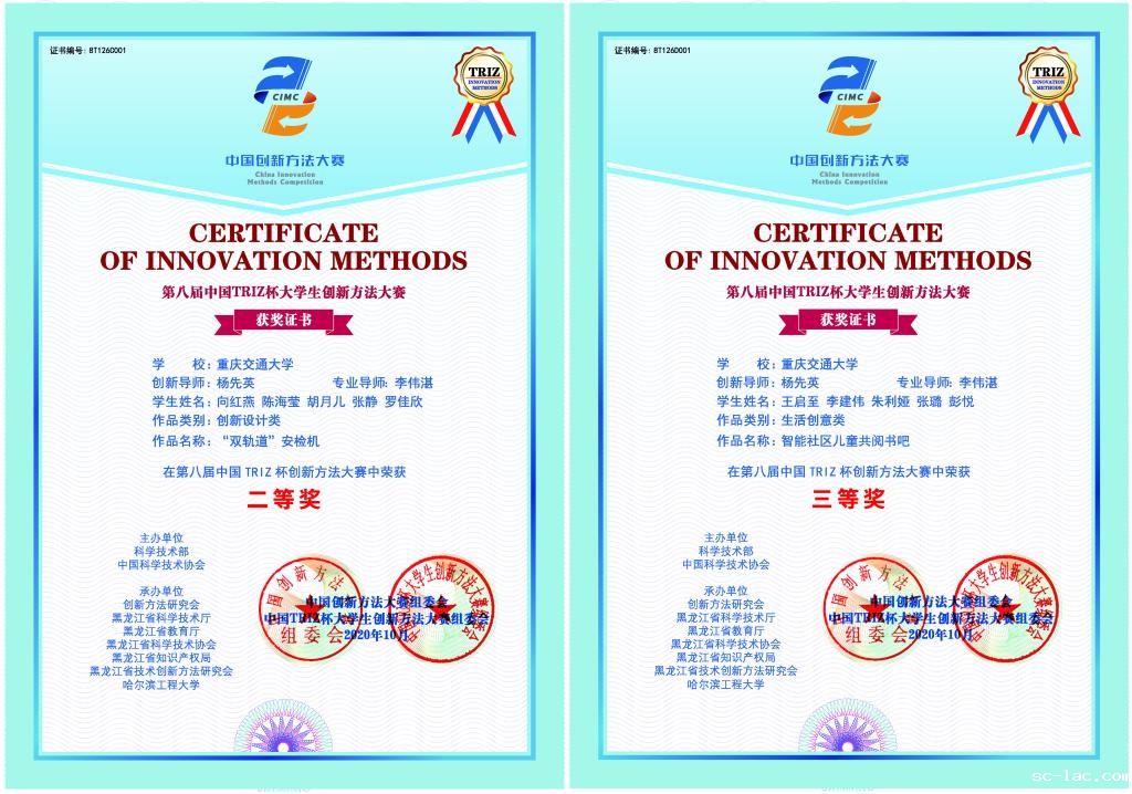 由中国科协、科技部联合主办的2020年中国创新方法大赛暨第八届中国TRIZ杯大学生创新方法大赛总决赛于今年10月底在哈尔滨工程大学成功举行。继去年首次参赛获得一项三等奖后,我院参赛学生作品再创佳绩,“双轨道安检机”荣获获二等奖,“智能社区儿童共阅书吧”荣获三等奖。