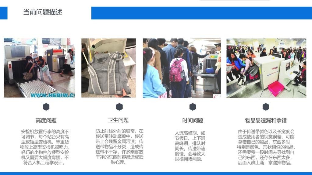二等奖获奖作品“双轨道安检机”,采取人性化设计理念与一机多用的结构模式,乘客可选择最适合自己的安检通道;箱体通道设计避免了过安检机过程中的弯腰用力情况;传送带下端的清洁装置,为乘客出行提供卫生保障。整个设计过程是在TRIZ创新理论基础上完成,是一款具有未来感、科技感的安检机。