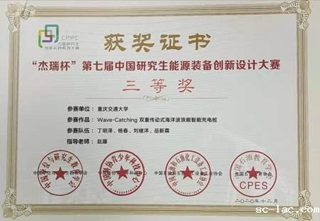 12月4日至6日,第七届中国研究生能源装备创新设计大赛全国总决赛在西安石油大学落下帷幕。我校由航运与船舶工程学院赵藤老师指导的作品《Wave—Catching双重传动式海洋波浪能智能充电桩》(丁明泽、杨春、刘绪洋、岳新霖团队)经过激烈角逐,荣获本次大赛三等奖。