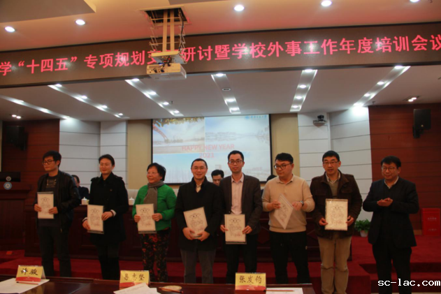 今年学校从二级学院遴选了73名有海外留学、访学和国际学术交流经历的教师国际合作与交流骨干教师作为国际化发展兼职导师,希望通过他们的引领和带动作用,推动各学院的国际合作与交流工作走深走实。今后学校将在申报公派出国留学、海外短期学术交流、国际科研合作、海外引智等项目时给予优先考虑及资助,同时还将定期组织骨干教师交流研讨,分享相关信息。易志坚副校长在会场为各二级学院国际化发展兼职导师代表颁发了聘书。