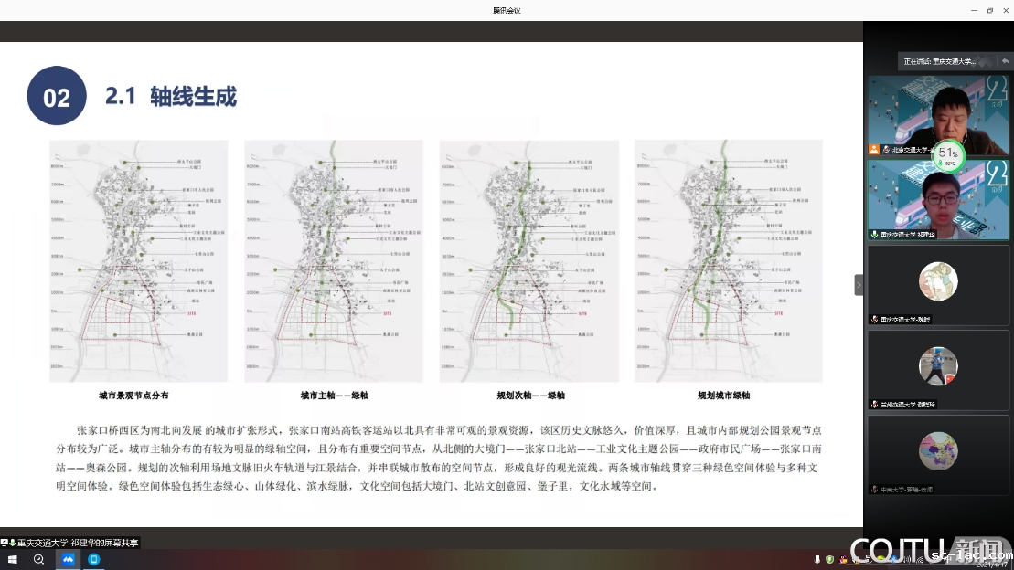 4月17日下午,2021第二届全国交通院校建筑类专业联合毕业设计中期答辩在线上平台拉开帷幕,来自北京交通大学、上海交通大学、西南交通大学、老伟德网上娱乐、西安交通大学、兰州交通大学、华东交通大学、长安大学、中南大学、石家庄铁道大学、河北建筑工程学院等国内11所具有交通特色及交通背景高等院校的160余名建筑类专业师生参加了本次活动。