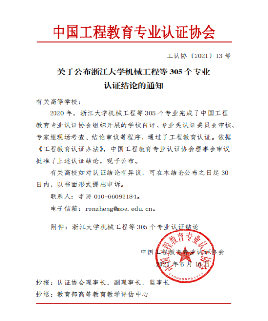 近日,中国工程教育专业认证协会印发《关于公布浙江大学机械工程等305个专业认证结论的通知》(工认协〔2021〕13号),公布了2020年工程教育专业认证结论,经学校自评、专业类认证委员会审核、专家组现场考查、结论审议等程序,我校机械设计制造及其自动化、测绘工程2个专业顺利通过认证,有效期为6年(有条件),有效期:2021年1月至2026年12月,两个专业均是首次参加认证即获得通过。至此,我校已正式发文通过中国工程教育专业认证或住建部专业评估的专业数量达到8个。